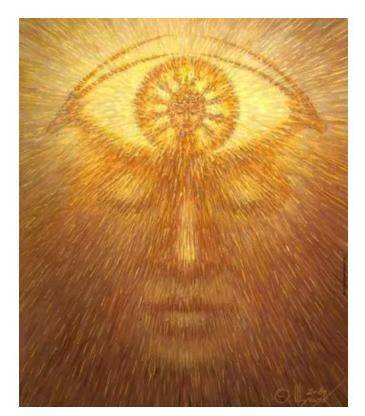 眼识所染的色尘让自我认为看到了东西、那东西是什么颜色、什么形状、大小远近。尘就是微粒的意思,感知到这些色尘的信息,就会形成自我的分析与判断,借此也就有了分别与辨识。同样的道理,耳朵、鼻子、舌头、身体、头脑的念想,都是能量微尘在外感与内感间构建了自以为是的一切。